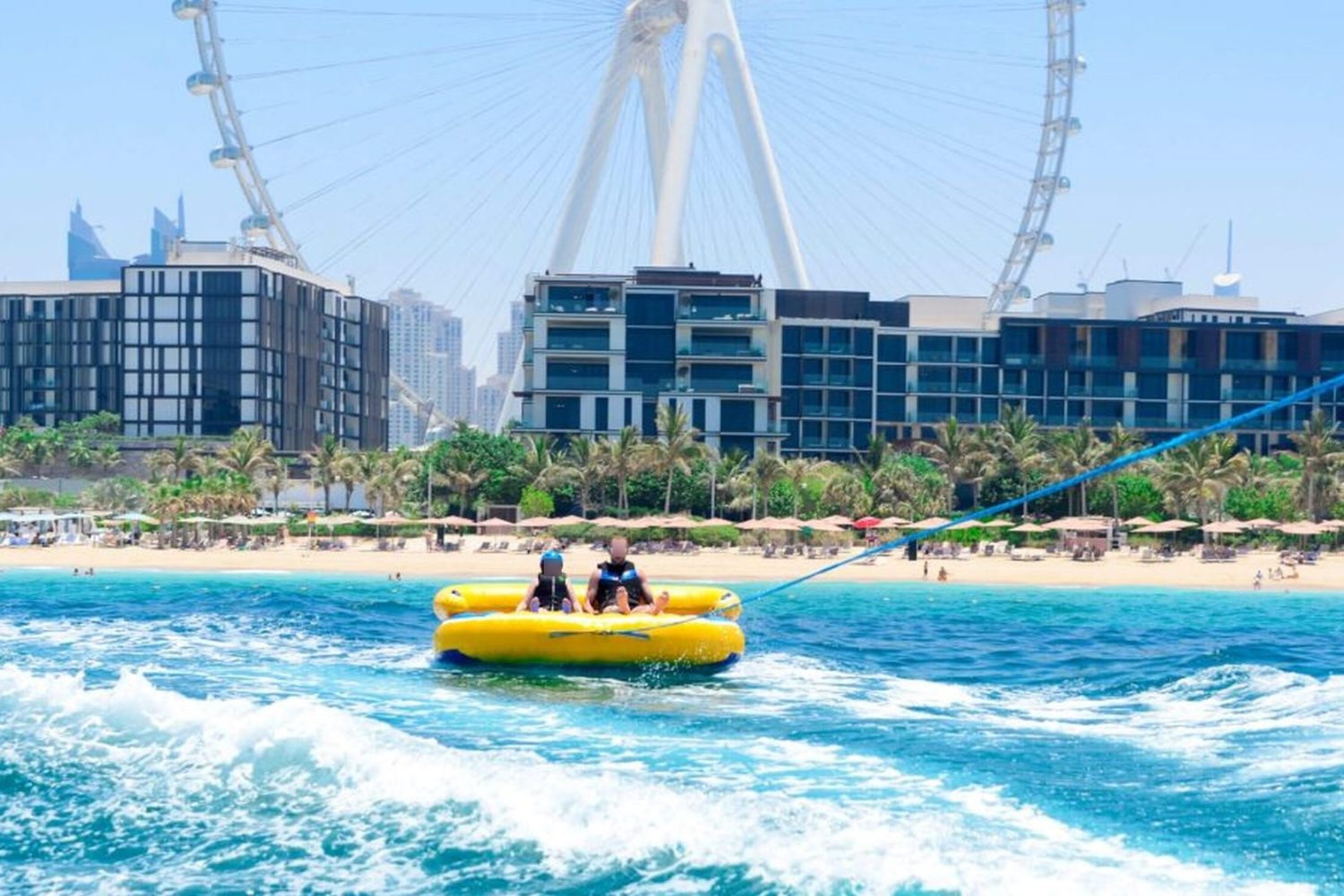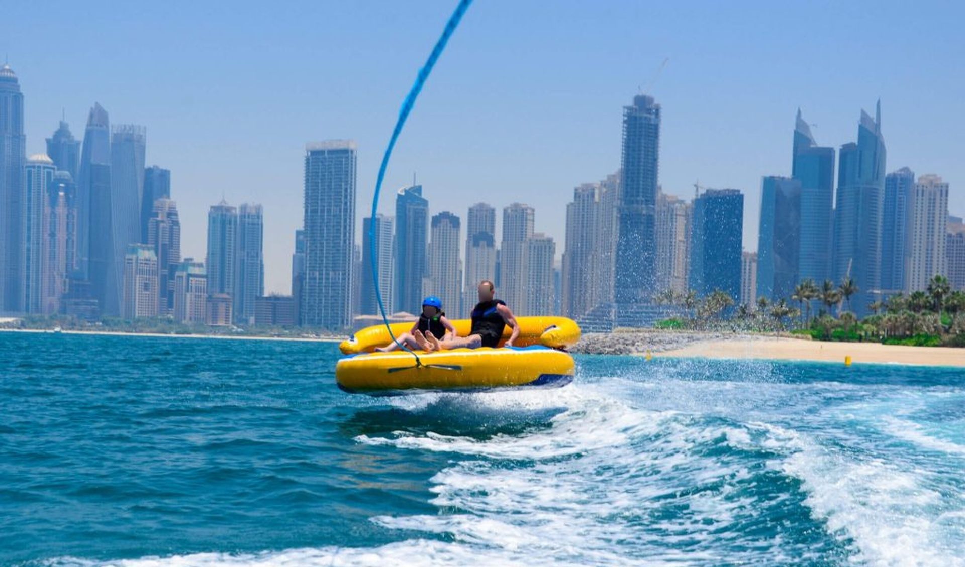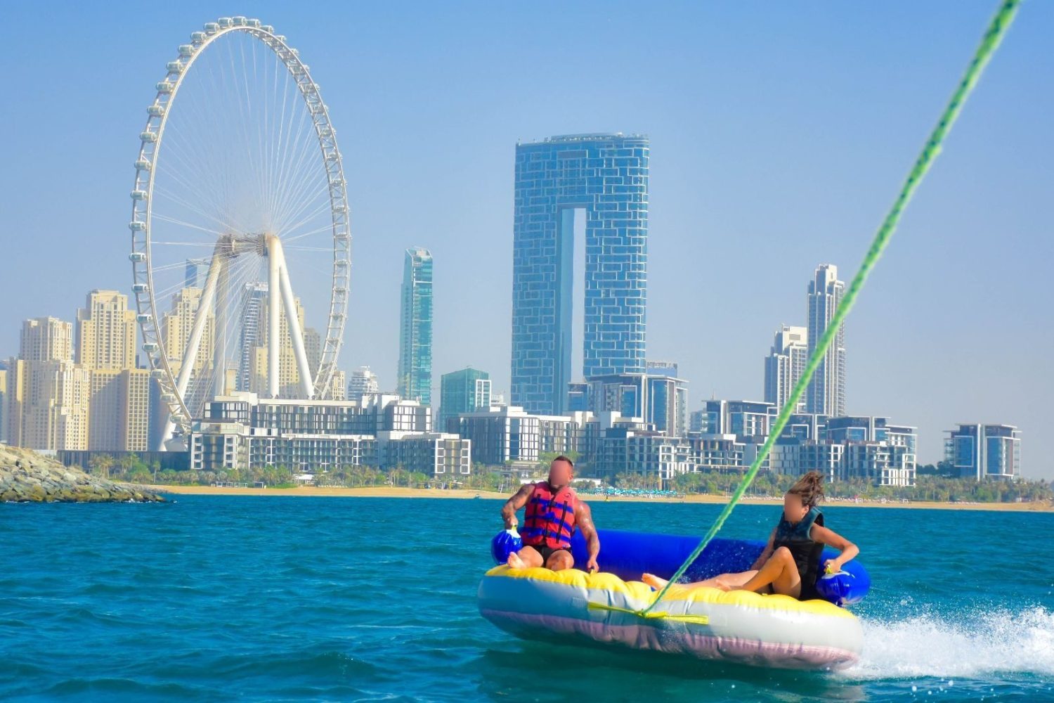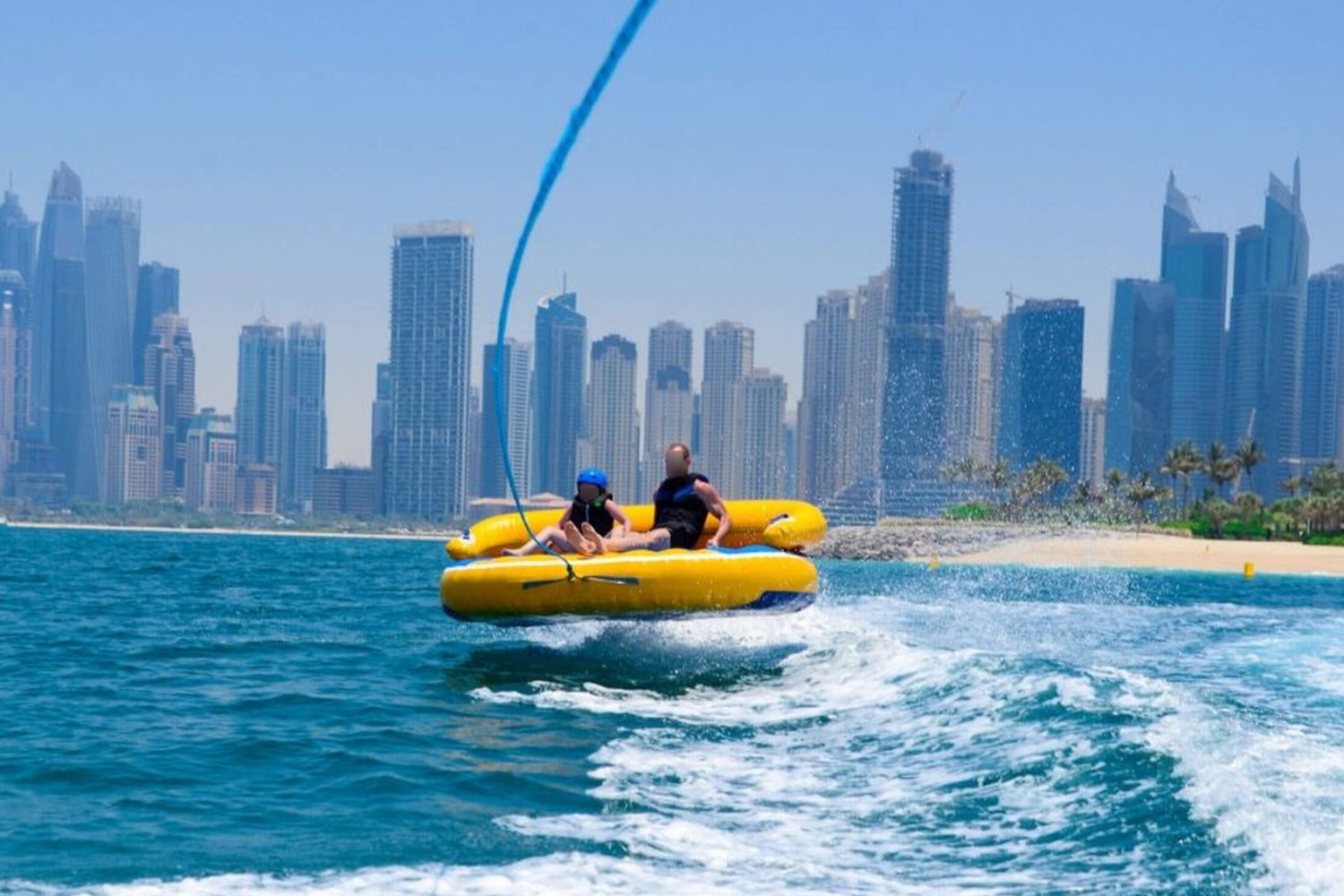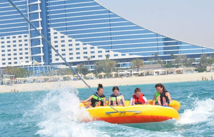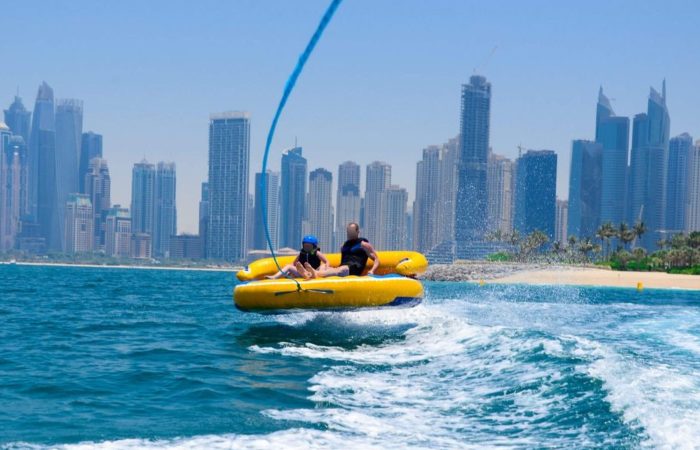Get ready for the ultimate splash! Hold on tight as you zoom across Dubai’s crystal waters on our high-speed inflatable donut. It’s the perfect mix of adrenaline, laughter, and incredible city views.